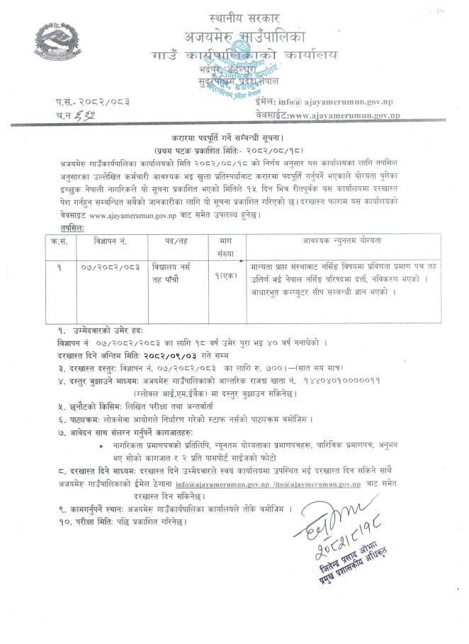 करारमा पदपूर्ति गर्ने सम्बन्धी सूचना ।
