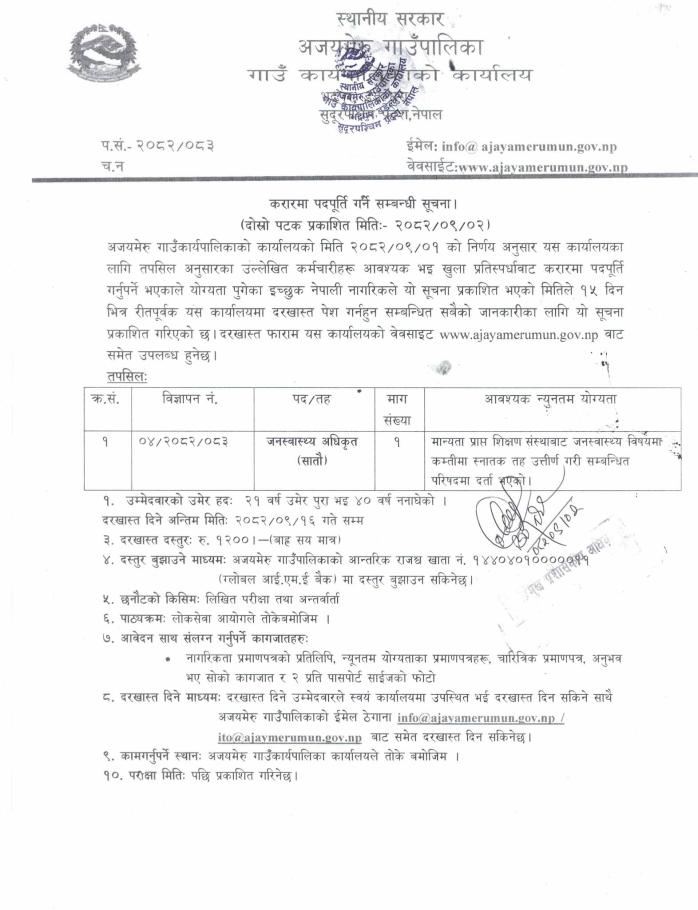 जनस्वास्थ्य अधिकृत करारमा पदपूर्ति गर्ने सम्बन्धी सूचना ।।