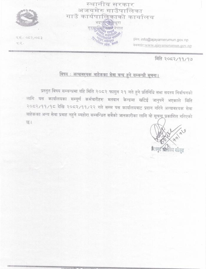 अत्यावश्यक बाहेकका सेवा बन्द हुने सम्बन्धी सूचना।