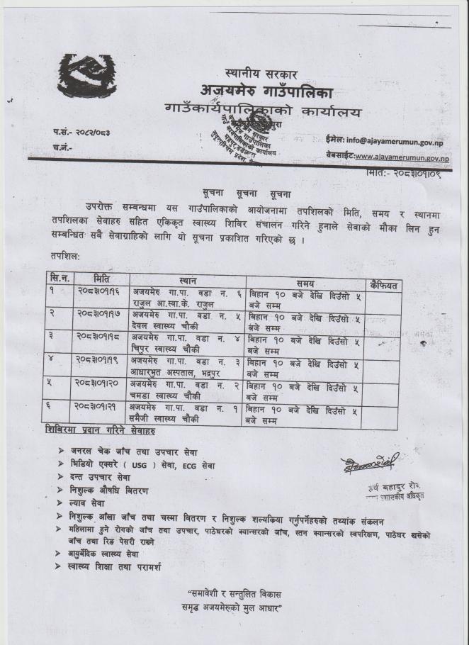 एकीकृत स्वास्थ्य शिविर सञ्चालन हुने सम्बन्धी सूचना !!!