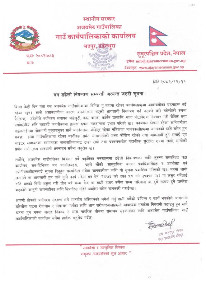 वन डढेलो नियन्त्रण सम्बन्धी अत्यन्त जरुरी सूचना।